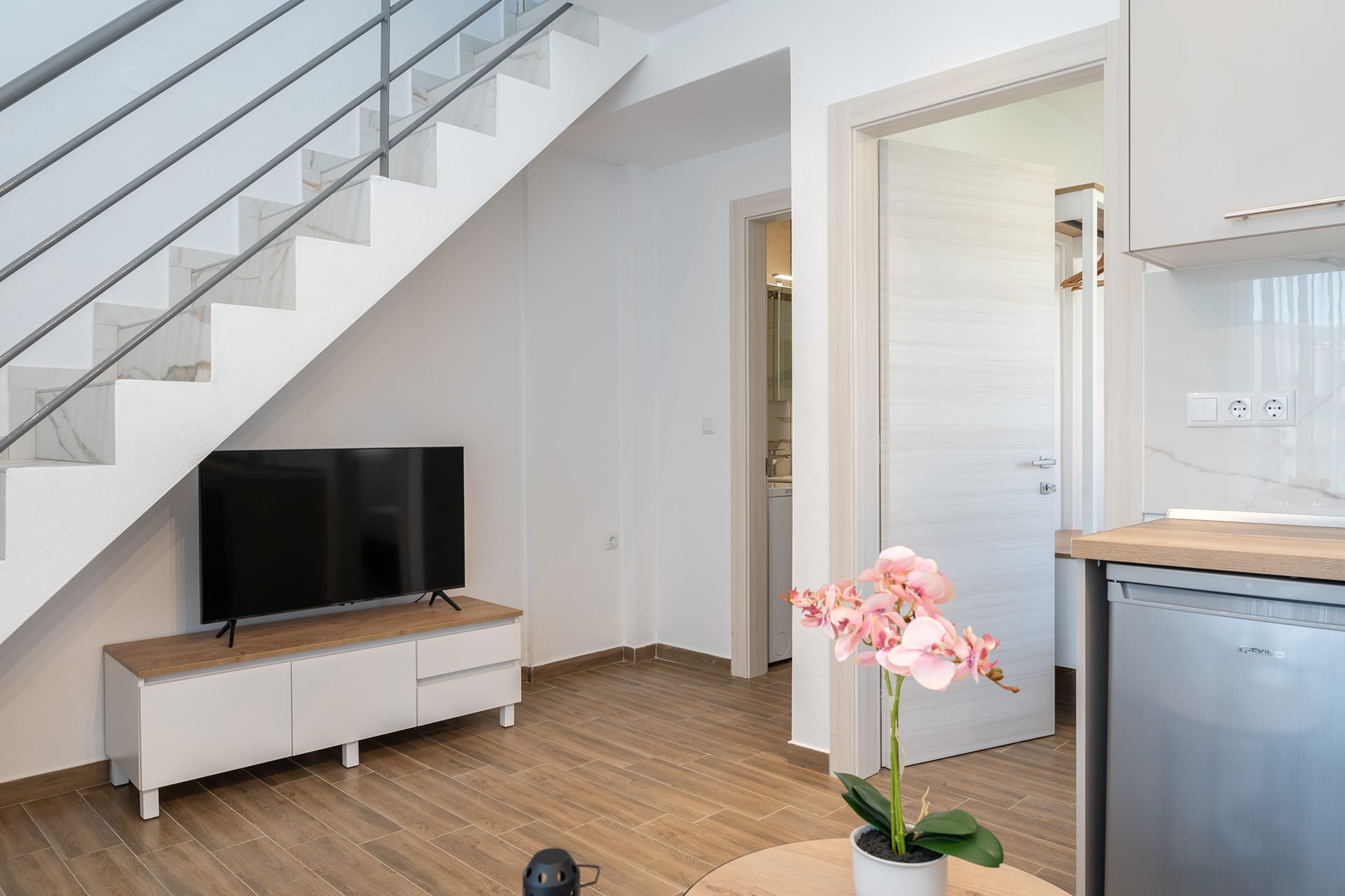 Our stylish two-bedroom lofts are perfect for families, friends, or couples seeking extra space and comfort. Spread across two levels, these lofts feature, two inviting sleeping areas – one private bedroom with a door, plus a cozy open-plan mezzanine bedroom on the upper floor overlooking the living area. Our Lofts are fully equiped with a living room, a kitchenette and a separate first bedroom on the first floor and another bedroom located on the upperfloor with an opening to the living room.