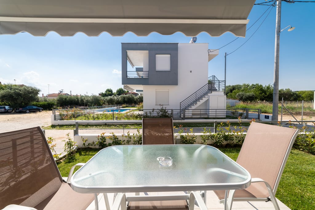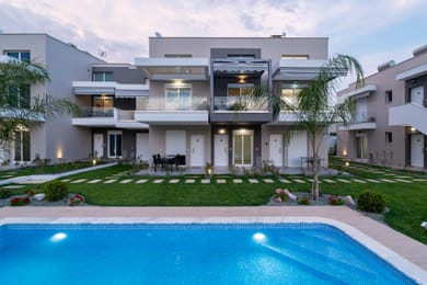 One fully equiped bedroom apartment either on the ground floor with a small terrace or on the first floor with balcony. Both kind of apartments have access to a common pool.
