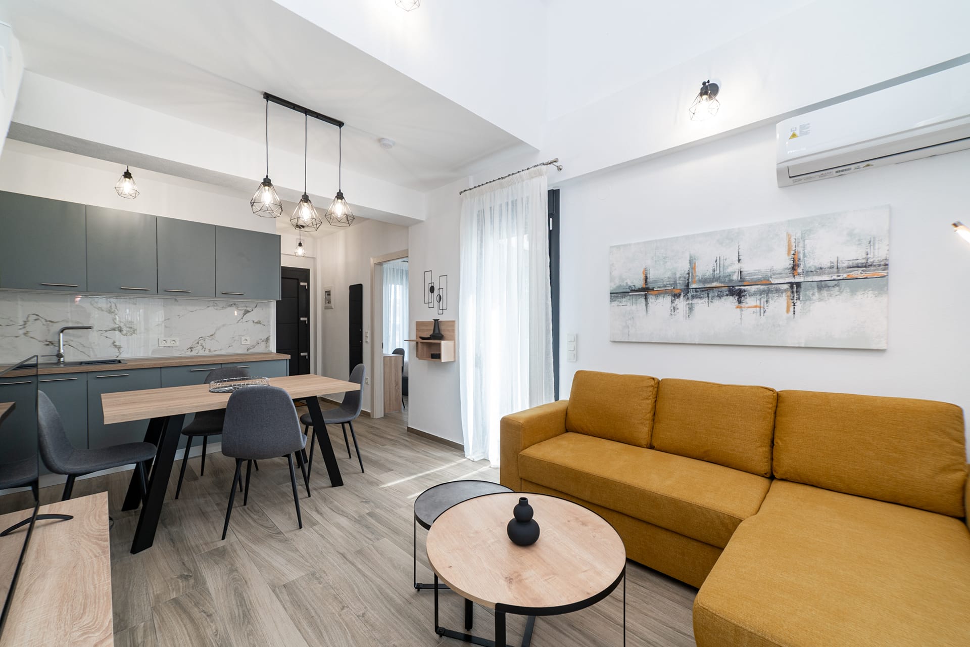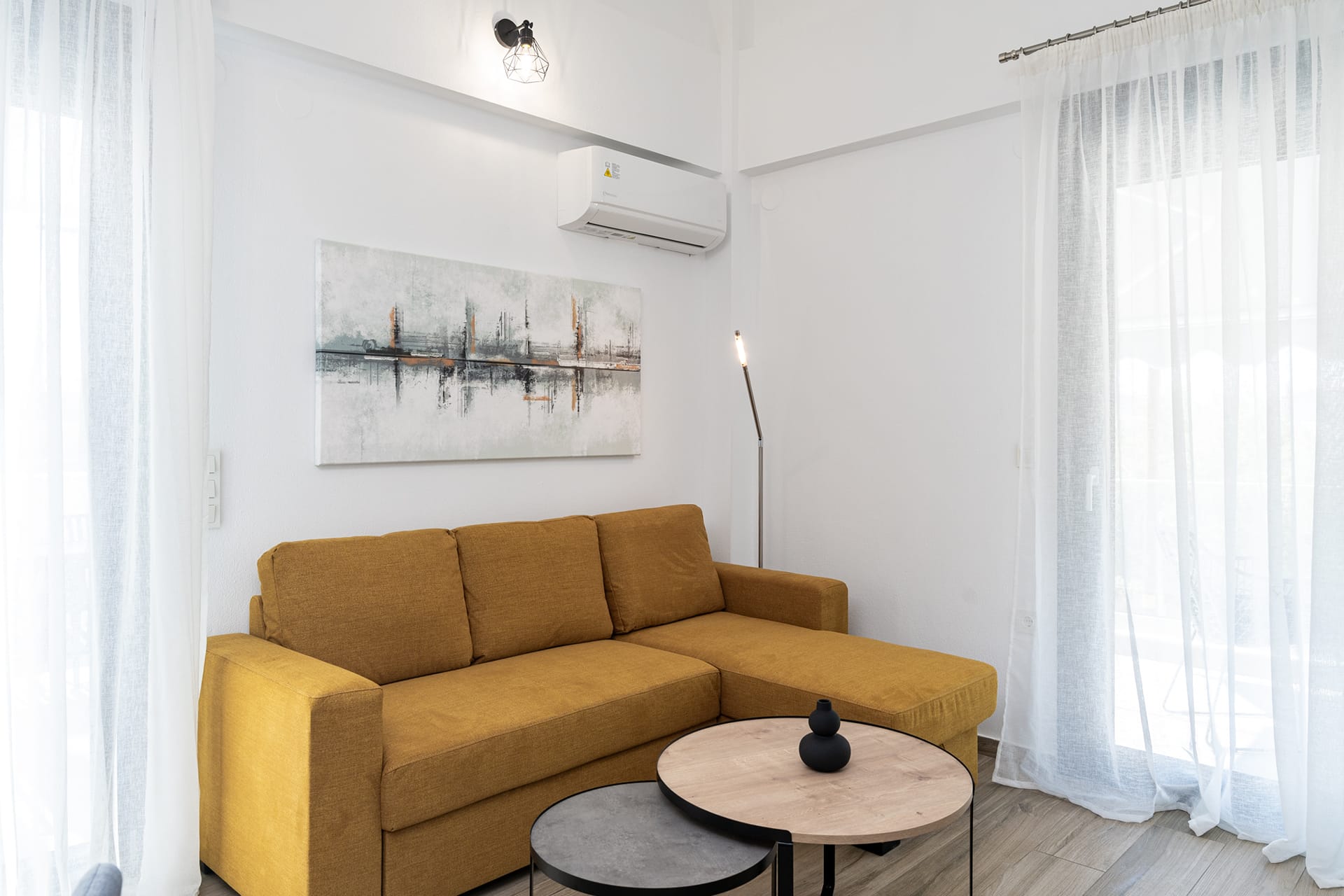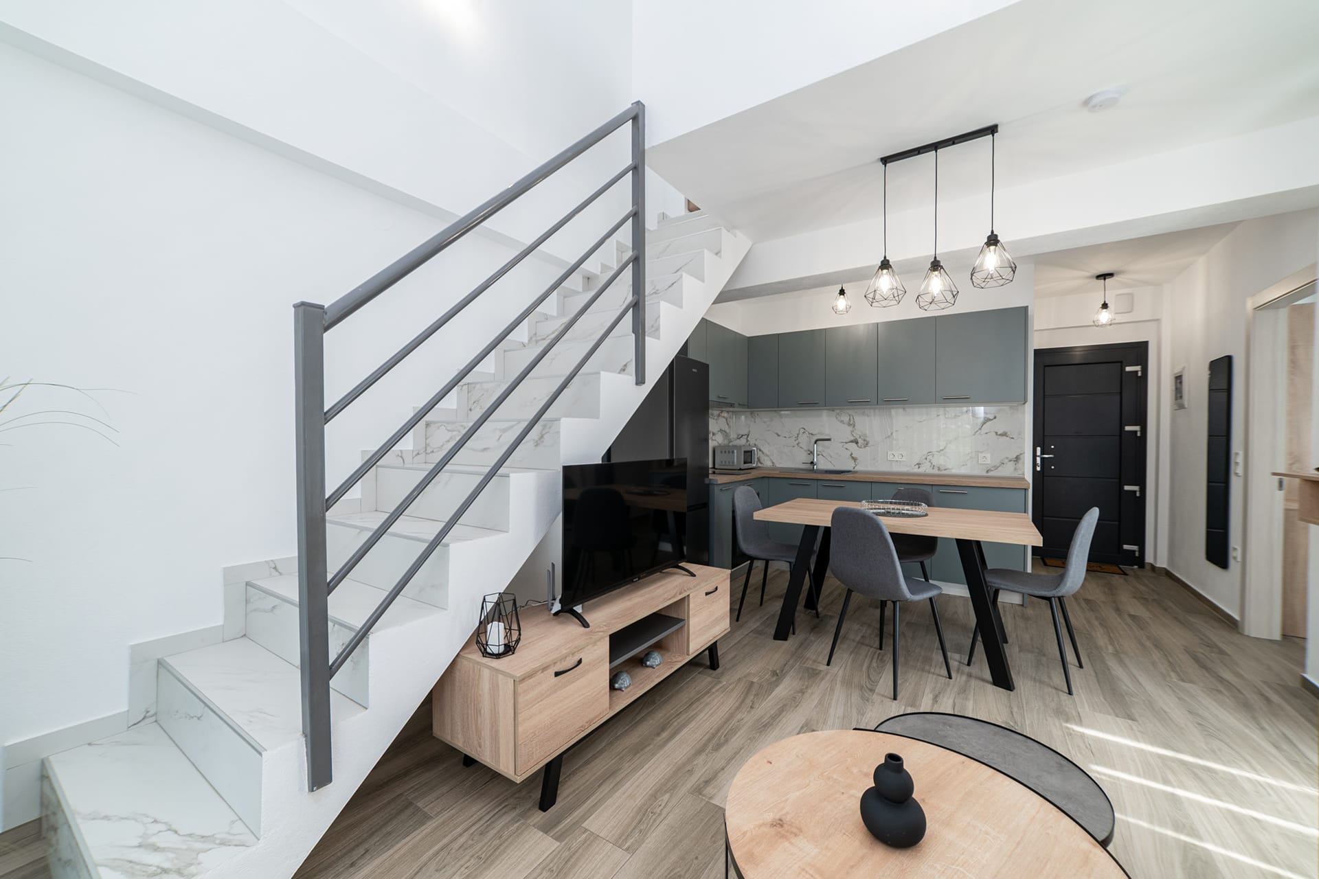 Our stylish two-bedroom lofts are perfect for families, friends, or couples seeking extra space and comfort. Spread across two levels, these lofts feature, two inviting sleeping areas – one private bedroom with a door, plus a cozy open-plan mezzanine bedroom on the upper floor overlooking the living area. Our Lofts are fully equiped with a living room, a kitchenette and a separate first bedroom on the first floor and another bedroom located on the upperfloor with an opening to the living room.