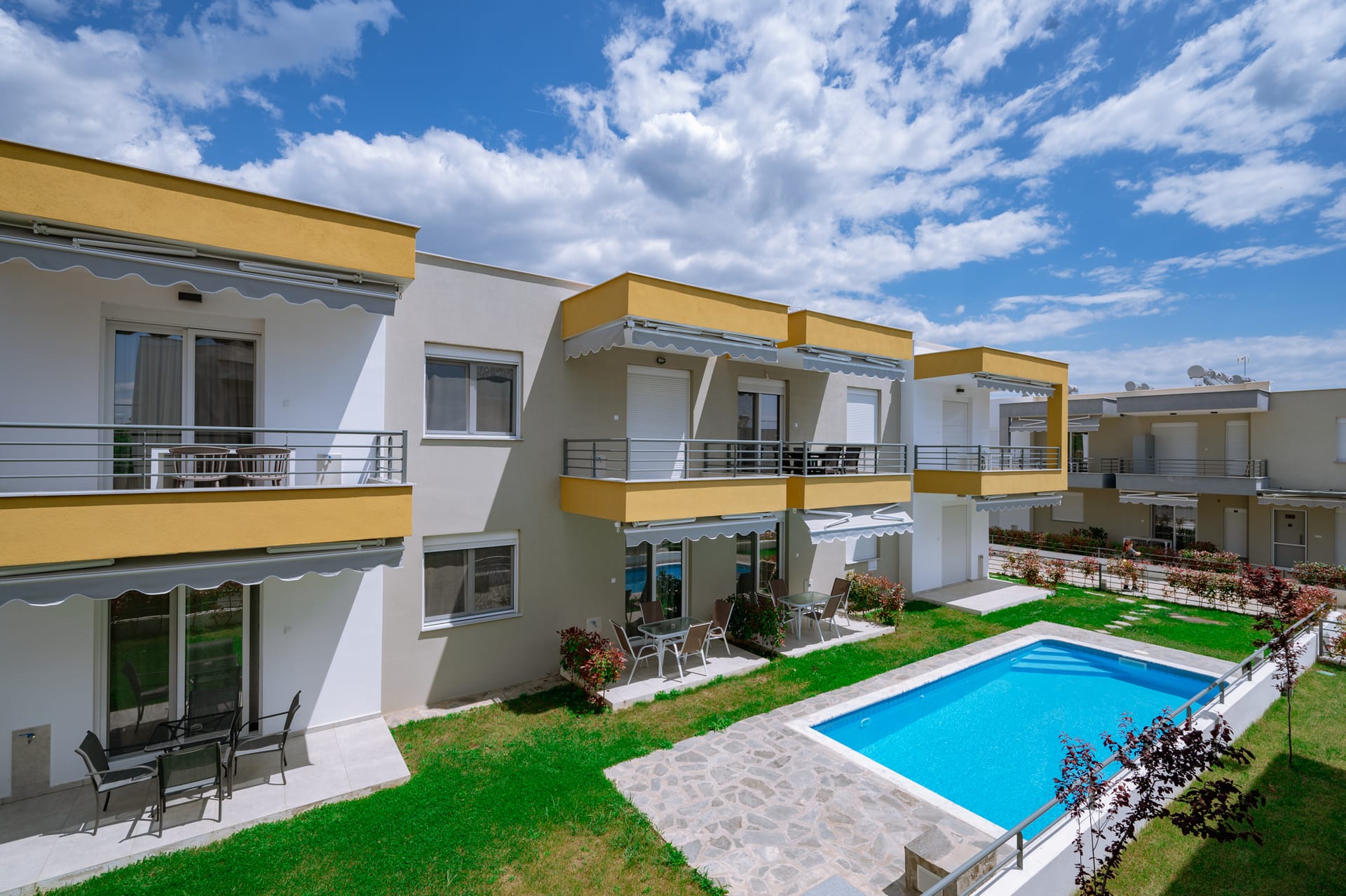 Fully equiped apartment with two separate bedrooms on the first floor with a balcony. Apartments have access to a common pool.